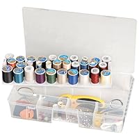 Sew Lutions Sewing and Threads Box is translucent and easy to view sewing supplies. Removable tray holds most popular sizes and shapes of sewing threads. Front fixed compartments are great for frequently used supplies. Divided compartments hold both small and large supplies. Maximum storage capabilities. Dimensions: 3-1/4"H x 16-1/2"W x 9-3/4"D. (accessories not included)